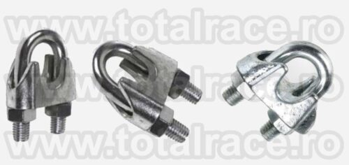 Total Race Romania va ofera din stoc bride-cleme de prindere cablu, din otel zincat pentru cablu otel , clipsuri (bride) tip DIN 741, bride zincate cablu tractiune, accesorii cablu tractiune, gama completa bride cablu.