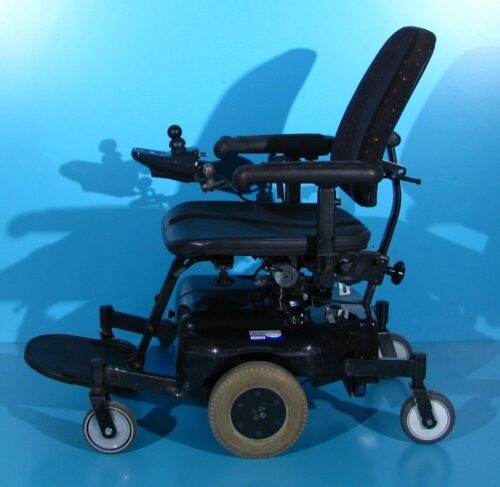 Scaun cu rotile electric second hand cu comanda pe joystick destinat persoanelor cu handicap si persoanelor cu deficiente locomotorii.