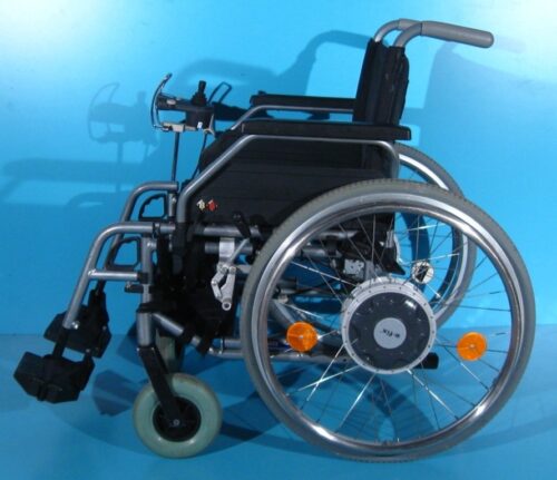 Rotile pot fi declupate de motor foarte usor iar scaunul poate fi impins din spate la fel ca un carucior cu rotile normal.
