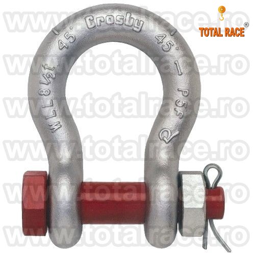 Total Race are in stoc: chei de tachelaj model G 2130 tip omega marca Crosby, cheie tachelaj cu bolt, piulita si stift de blocare , chei tachelaj capacitate intre 0,33 Tone si 150 Tone . Cheile de tachelaj sunt in conformitate cu: EN 13889:2003 si indeplinesc cerintele de performanta ale Fed. Spec. RR-C271D tip IVA, grad A, Clasa 2. Chei de tachelaj cu factor de siguranta: MBL = 6 x WLL (Sarcina maxima de lucru) , cheie tachelaj: Forjat-Calit si Temperat,material otel aliat, galvanizata la cald. Capacitatea stantata permanent pe shackles. Cheile de tachelaj peste capacitate WLL= 25 tone sunt echipate RFID. Cheile de tachelaj Crosby® se livreaza cu certificate de calitate CE de la producator.
