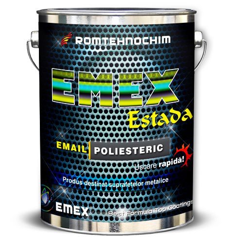 Emailul Poliesteric EMEX ESTADA este un produs pentru utilizare strict profesionala, cu rezultate de exceptie, destinat atat acoperirii de protectie cat si decorative, in special a suprafetelor metalice sau nemetalice (inox, cupru, zinc, etc.), chiar exploatate in conditii de agresivitate chimica sau mecanica, la interior sau exterior.
