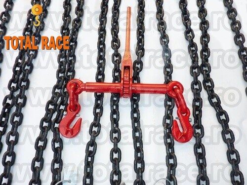 Total Race comercializeaza din stoc lanturi de rezistenta din lant de ancorare de 8 mm , Lc=4000 daN ce contin: intinzator lant cu carlige de scurtare la capete 8 mm , 2 carlige cu siguranta 8 mm , cu montare directa pe lant, lant negru grad 80 cu lungime la cerere in functie de nevoile proiectului dumneavoastra , eticheta identificare dispozitiv lant ancorare .