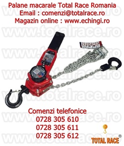 Total Race comercializeaza cu livrare din stoc Bucuresti : palan manual cu actionare prin brat pentru tensionare , amarare sarcini , palane manuale lant capacitati 250 Kg – 6000 Kg , macara cu levier 250 Kg, palane manuale cu levier 500 Kg , palan profesional 1,5 tone , palane mecanice cu lant 3 tone , scripete cu levier 6 tone , palane macarale, palan levier productie Suedia. Pentru preturi , date tehnice si stoc accesati magazin online : www.echingi.ro si www.echingi.com
