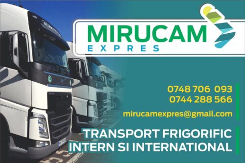 MIRUCAM EXPRES SRL activeaza in domeniul transporturilor internationale de marfuri, fiind o societate cu capital privat in continua expansiune. Are in dotare vehicule noi echipate cu sisteme de comunicaţii, localizare, mesagerie, telemetrie de refrigerare la remorci, termografe omologate. Printre obiectivele societatii se numara eficienta, longevitatea, responsabilitatea fata de angajati, orientarea spre clienti prin flexibilitate.