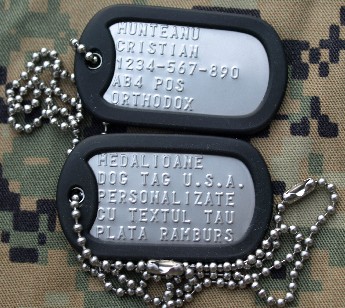 Oferim spre vanzare Placute de identificare armata S.U.A. – DOG TAG, personalizate cu textul dorit de client.