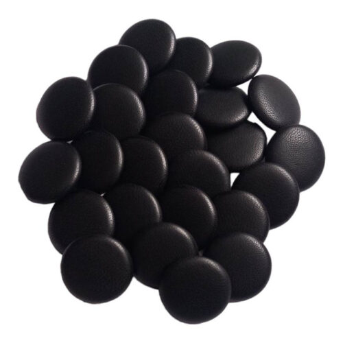 Set 25 nasturi metalici cu picior rotunzi, imbracati in piele naturala negru 2.5 cm marimea 40