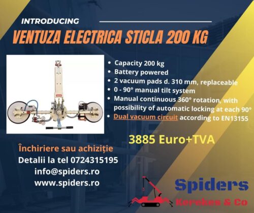 Ventuza electrica pe baterie, capacitate 200 kg cu dublu circuit.