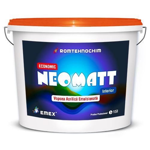 Vopseaua Lavabila Economica de Interior NEOMATT este un produs de dispersie, hidrosolubil, pe baza de polimeri acrilici de tip Latex, aditivi si fileri, pentru finisarea suprafetelor interioare, cu grad de alb ridicat, aderenta buna la suport si aspect mat.
