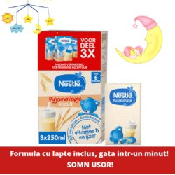 Total Blue va ofera din stoc import Olanda cereale gata preparate, Nestlé Pyjamapapje cu vanilie. Cerealele olandeze pentru bebelusi Nestlé cu vanilie sunt pe baza ...